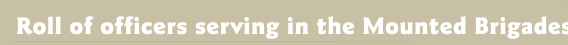 This page contains what I believe to be a complete list of officers serving in the South African Mounted Brigades in German East Africa. The original roll were a number of handwritten sheets found in the South African National Defence Force archives in Pretoria. It is of great use as a "quick check" to see if officers served in the mounted brigades. An good example of it being of great use (to me) is a DCM group I have to L.R. Jordaan. Jordaan recieved his DCM as a NCO in German South West Africa, his files in the archives are incomplete. It was only with this list that I was able to confirm his service as an officer in GEA. With regular trios to officers the 14-15 star is named for service in GSWA but, as with BWM/Victory medal sets, an alternate method is needed to find GEA service for officers. As medal collectors know, groups to "other Ranks" or "non-officers" mention the unit, so it is possible to see if the "other Ranks" served in East Africa just by looking at the medals, not so with officers. A couple of notes to this list. 413 officers are listed of which 135 were invalided and 42 declared Unfit for further service. It should be noted that this does not tell the full story. Major E.W. Hunt D.S.O., M.C.and Captain F.A. Gerber M.C. (two randomly selected officers in my collection) both suffered from recurring bouts of Malaria and other tropical diseases but are not listed as Unfit or Invalided in the list below. Relatively few officers (or men) were killed or wounded in action but very many suffered from a host of terrible diseases. A wave of officers were repatriated/invalided back to the Union at the end of 1916 and it was decided that troops of European origin were not suited to the conditions in East Africa (it should further be noted that the South African troops were issued with thin tropical uniforms which offered no protection from the insect bites. The German troops, inspite of the heat, wore uniforms of the thick cloth that provided a form of protection). In Smuts third and final Despatch as Commander in Chief of the troops in German East Africa he explains the repatriations. "It remains to add a few words in reference to the reorganisation of the fighting units under my command effected at the same time. Our advance to the areas of the Rufiji and Great Ruaha rivers through numerous tsetse-haunted belts had resulted in the loss of most of the animals of the mounted troops, and the very rapid rise of the sick rate among all the troops. It was clear that white troops who had had repeated attacks of malaria or dysentery would in the further prosecution of the campaign in those extremely unhealthy areas be more of an encumbrance than a help. I therefore decided to abolish the Third Division, under Major-General C. J. Brits, including the Second Mounted Brigade, under Brigadier-General Enslin, and to return these officers with their staffs to South Africa; to incorporate into the First Mounted Brigade, under Brigadier-General Nussey, all fit men belonging to the Second Mounted Brigade, and finally to evacuate from East Africa all white troops declared to be medically unfit by special medical boards. My forces, therefore, again became organised into two divisions, under Major-Generals Hoskins and van Deventer respectively, while Brigadier-General Beves infantry brigade again became a force reserve under my immediate control. As a result of these steps close on 12,000 white troops were evacuated from East Africa between the middle of October and the end of December, 1916, and their places were to some extent taken by the new King's African Rifles battalions, which I was forming and training with the sanction of the War Office, as well as by the Nigerian Brigade under Brigadier-General F. H. B. Cunliffe, C.B., C.M.G., which reached Dar-es-Salam in the second and third weeks in December." The names are listed first by unit and then according to the original list (which was ROUGHLY alphabetical). A few names where entries were illegible are entered seperately at the bottom of the first list. It must be noted that a number of officers were transfered to different units during the reorganisation, these transfers are NOT covered in the roll. Listed first are the Staff of the 1st and 2nd Mounted Brigade headquaters, then the 1st, 2nd, 3rd, 5th, 6th, 7th, 8th and 9th Mounted Regiments followed by "Van Deventer's Scouts" and the 2nd Mounted Brigade Scouts (Van Deventer's Scouts were later renamed 1st Mounted Brigade Scouts). The roll by unit: 1st H.Q. Maj.Gen. Deventer (van) J.L. 1st H.Q. Brig. Gen Botha M. Resigned 5/9/16 1st H.Q. Brig Gen Nussey A.H.M. 1st H.Q. Lieut Col Beard G.J.A. 1st H.Q. Lieut Col Brink (D.S.O.) C 1st H.Q. Maj. Brink (D.S.O.) G.E. 1st H.Q. Major Jager (de) G.J.W. Invalided 18/10/16 1st H.Q. Capt Duell W.F. *Sgl Coy*2nd H.Q. Capt Philips G.P. 1st H.Q. Capt Fosbraey A.D. Invalided 19/12/1916 1st H.Q. Capt Hoffman A.de la R. 1st H.Q. Capt Jackson F.E. *Sig coy* 1st H.Q. Capt Jeffrey G.R. 1st H.Q. Capt. Loxton T.P.N. Invalided 10/11/16 *released 5/17* 1st H.Q. Capt Molter W.M. *released from service 4/17* 1st H.Q. Capt Murphy G.J. *released from service 5/17* 1st H.Q. Capt Owen P.L.A. *M.i.D. released 3/17* 1st H.Q. Capt Osrin J.J. 1st H.Q. Capt Tobias M.S. 28/12/16 1st H.Q. Lieut Neethling W. Invalided 22/11/16 1st H.Q. Lieut Rooyen (van) A.J. 1st H.Q. Lieut Wet (de) P.C. *released 4/17* 2nd H.Q. Major Gen. Brits C.J. Invalided 12/10/16 *Released 1/17* 2nd H.Q. Brig. Gen. Enslin DSO B.G.L. Invalided 22/11/16 *Released 9/1/17* 2nd H.Q. Col Brink A.J.C. *Resigned 9/12/16, M.i.D.* 2nd H.Q. Major Brink T.D. Invalided 12/10/16 *released 31/1/17* 2nd H.Q. Major Klerk (de) W.J. 2nd H.Q. Major Prins (M.C.) A.J.F. 2nd H.Q. Major Turner R.B. *M.i.D.* 2nd H.Q. Capt Boshoff F.P.J. *Released 8/17* 2nd H.Q. Capt Botha L. *Released 3/17* 2nd H.Q. Capt Kotze G. Invalided 23/10/16 2nd H.Q. Capt Michaelion A. 2nd H.Q. Capt Philip A.D. Invalided 22/11/16 2nd H.Q. Capt Philips G.P. 2nd