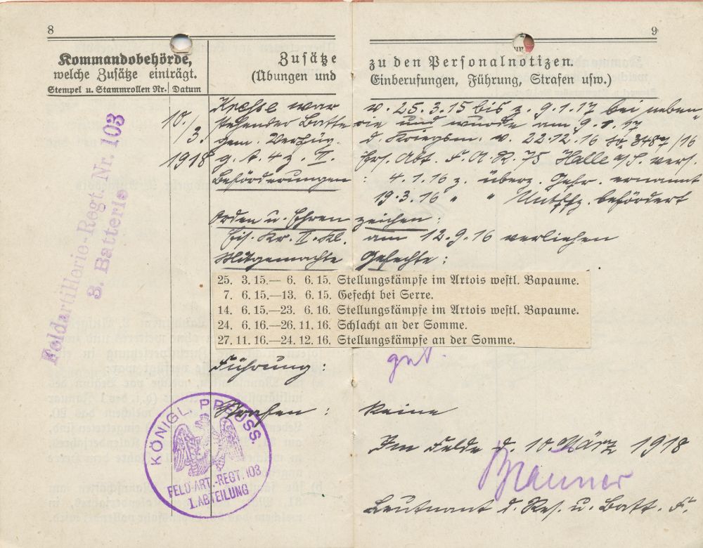 signed on the 19th March 1916 by Major XXX, Bataillons-Kommandeur,