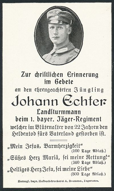 Above: Johann Echter was in the 3rd Jäger Regt, 1st Schneeschuh Battalion. He was wounded at the J-Werk near Vaux on the 12th of June 1916.